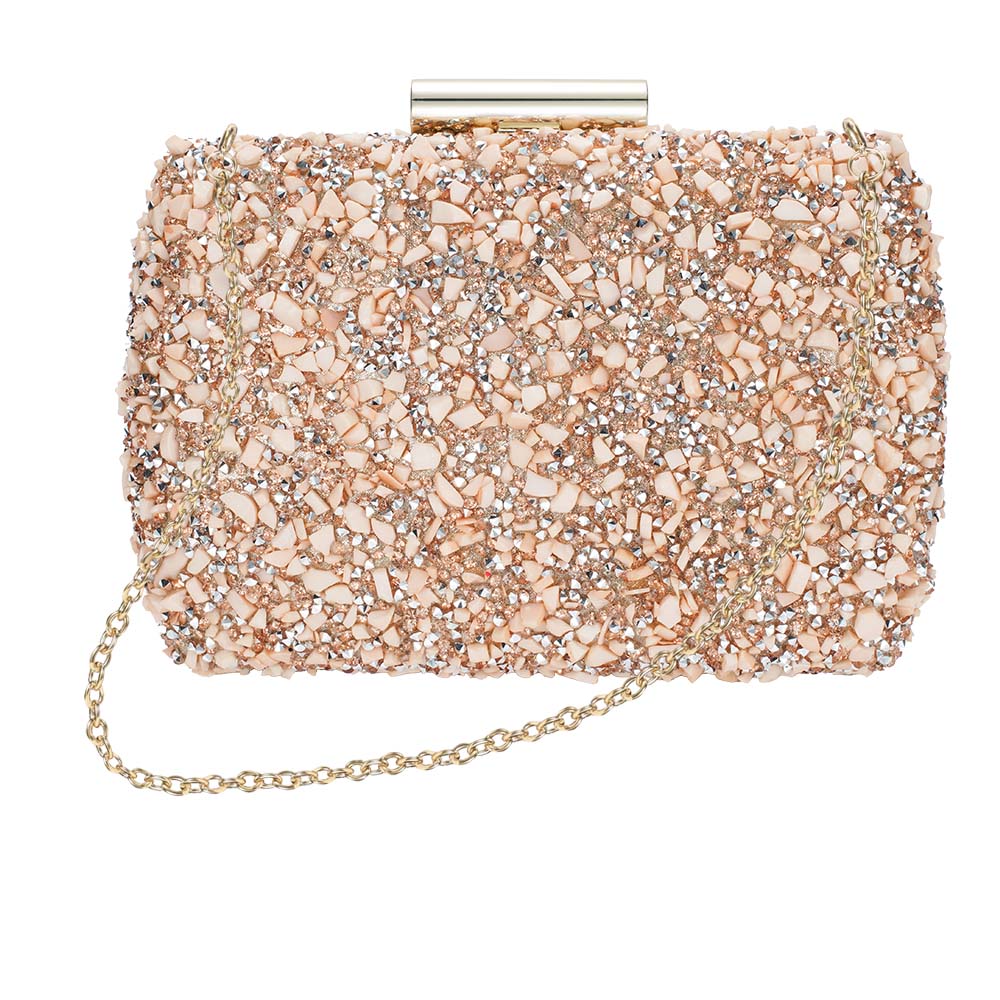 It's pretty, pink, and utterly girly. The delicate rose glitter palette of the Icing Pretty in Pink Clutch adds softness and feminine elegance to beautify any outfit.